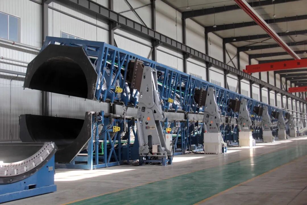 在大型风电叶片制造过程中,翻转系统的稳定性、精准度与安全性直接关系到生产效率与人员安全。双一科技自研双关节翻转系统,通过PLC智能控制系统实现精准调控,确保双关节翻转全程同步运转,从根本上消除了传统设备常见的翻转死点问题,让大型叶片模具翻转过程更平稳、作业更安心。